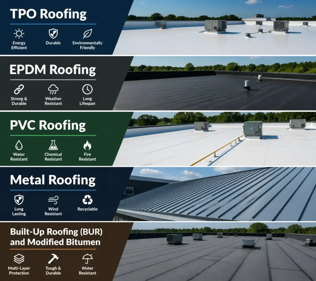 - Roofing materials vary in price. TPO and EPDM are more affordable, while metal and PVC cost more due to added durability and complexity.