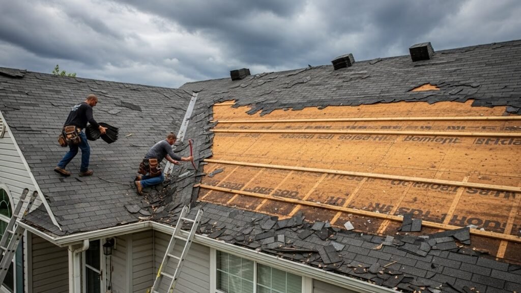 It’s crucial to hire a professional roofing contractor who can assess the full extent of the damage. They will check for hidden damage and ensure that the roof is structurally sound before recommending repairs or a full replacement.